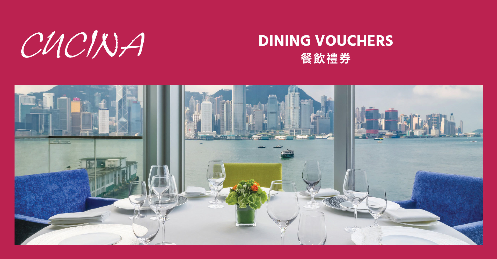 Cucina: Level 6, Marco Polo Hongkong Hotel, 3 Canton Road, Harbour City, Tsim Sha Tsui, Kowloon / T +852 2113 0808 / E info@cucinahk.com